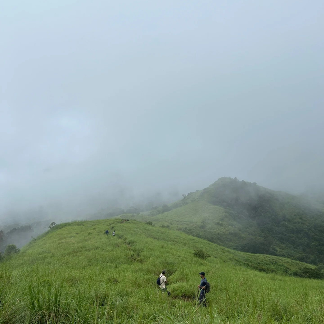 The final stretch is rocky and exposed, but the reward is 360° Western Ghats views at Pushpagiri peak. On a clear day, you’ll see endless ridges fading into the horizon.